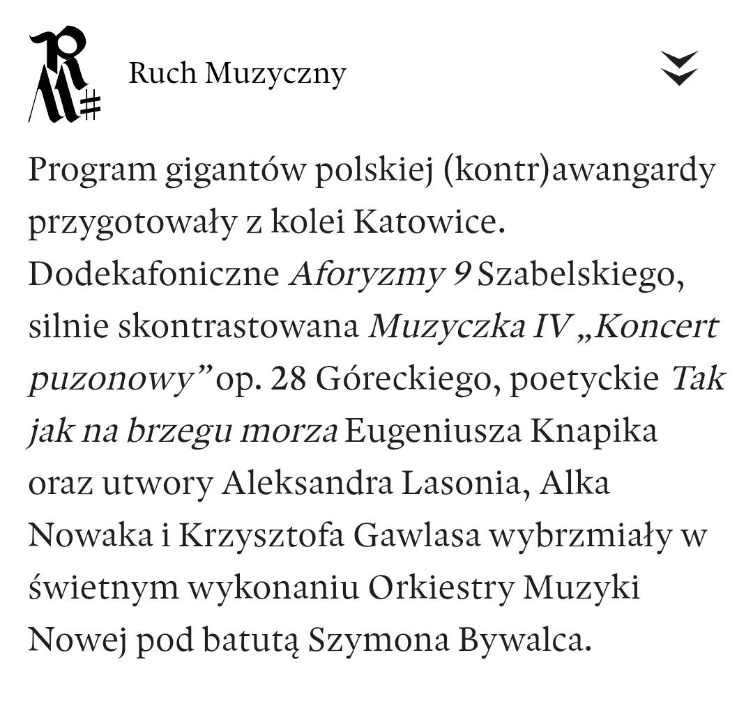 Recenzja Małgorzaty Heinrich w “Ruchu Muzycznym”