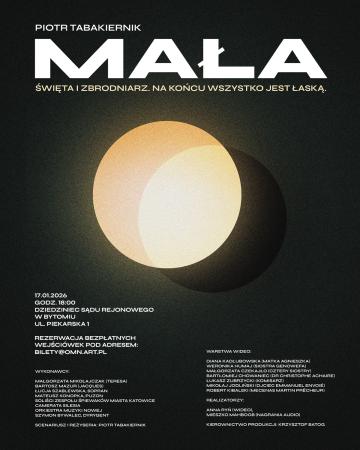 Prawykonanie „Małej” w NOSPR oraz powtórzenie w Teatrze Rozbark w Bytomiu w roku 2023 spotkały się z niezwykle żywym odbiorem publiczności – bilety zniknęły niemal natychmiast. Dlatego wracamy do tego utworu w ramach grantu "KPO dla kultury", prezentując go w wyjątkowej przestrzeni dziedzińca Sądu Rejonowego w Bytomiu – miejscu, które nadaje tej historii dodatkowy, mocny kontekst.