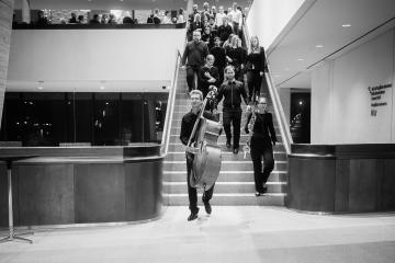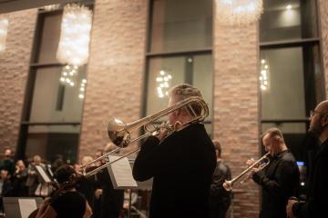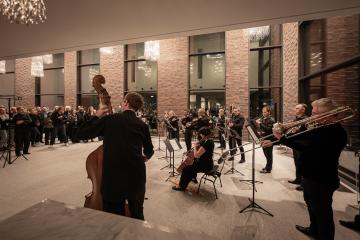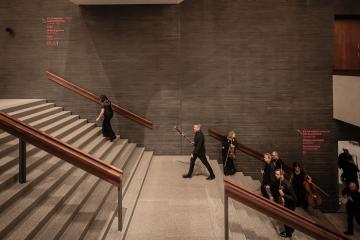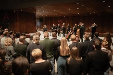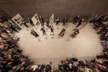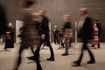 Utwór Petera Ablingera „Moment upuszczenia pomieszczenia 1,2,3” powstał na zamówienie Narodowej Orkiestry Symfonicznej Polskiego Radia w Katowicach, aby uświetnić jubileusz 10-lecia otwarcia nowej siedziby, tego pięknego budynku wraz z jego wspaniałymi salami koncertowymi. Niestety utworu nie udało się wykonać wcześniej, za życia kompozytora. „Moment upuszczenia pomieszczenia 1,2,3” zabrzmiał po raz pierwszy dopiero 12 października 2025 r w wykonaniu Orkiestry Muzyki Nowej.