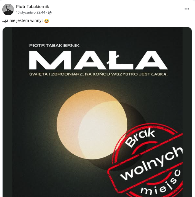 Piotr Tabakiernik (*1986) - kompozytor, librecista, reżyser. Nie przyznaje się do winy. Dowód: wpis na Facebooku z dnia 10 stycznia: